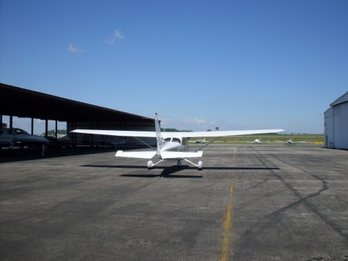 It took me a little bit to reason that I wasn’t concerned about getting the plane back and that the winds were well within my abilities and that of the plane, but I did and we got ready to leave. Preflighting a plane in stiff winds is difficult to say the least. We got it done though. The biggest thing that stuck with me was the last words someone said to us: “You gettin’ ready to take off? Good Luck…” I reasoned that if I got to the end of the runway and the wind was too much I would taxi back in and park it, but it wasn’t necessary. I firewalled the throttle and we were off.